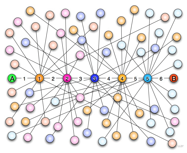 No son, sin embargo, los únicos conceptos que tratan de explicar la conexión entre ciertos fenómenos o entre la propia gente. ¿Sabías, por ejemplo, que todos los seres humanos estamos unidos por una media de seis personas entre nosotros? Esto quiere decir, pongamos por caso, que tú conoces a alguien que a su vez conoce a otro alguien que conoce a alguien que conoce a alguien que conoce a Ewan McGregor. Algo que parece tan enrevesado es lo que intenta explicar la teoría de los Seis Grados de Separación, la cual afirma que todos los individuos estamos conectados mediante una cadena de conocidos que cuenta con alrededor de seis eslabones.